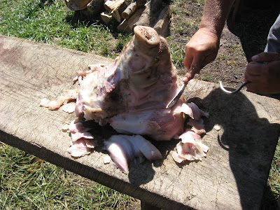 Waste not, Want not -I love this old saying. This is exemplified in the life of the early settlers, especially the Pennsylvania Germans. They say they used everything from the pig but the squeal. Scrapple was made from the head and meat scraps on the bones. They used the stomach as a casing for holding onions and potatoes-a dish called pig's stomach-which is quite good. I love the cracklins-a crunchy deep fried delicacy made for the connective tissue in fat-a result of making lard. I'll bet you are thinking, Yuk, Yuk, Yuk!